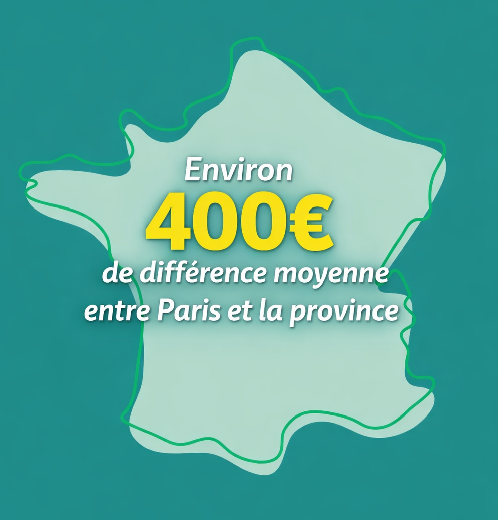👉 On observe toujours un écart notable entre Paris et la province, avec environ 400€ brut de différence moyenne